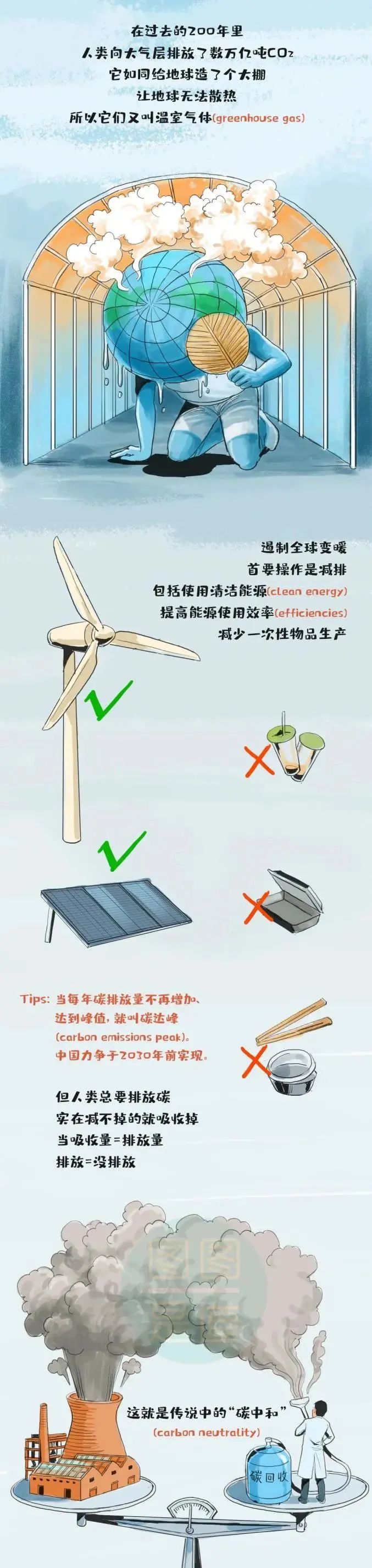 什么叫“碳達峰、碳中和”?一副漫畫看明白